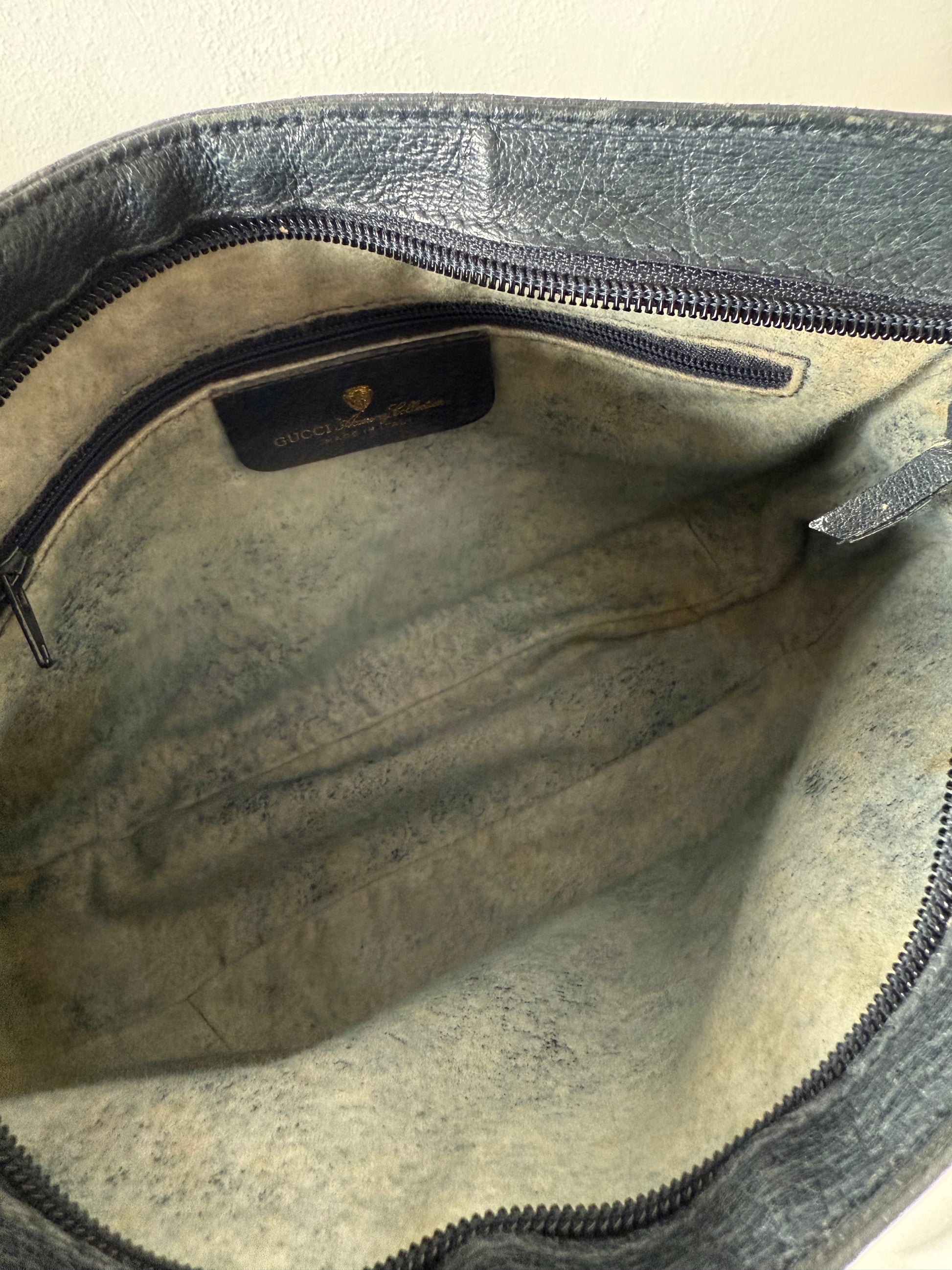 Tasken er navy farvet med guld hardware og fremstår i meget flot udvendigt stand. Foret er falmet indvendigt.