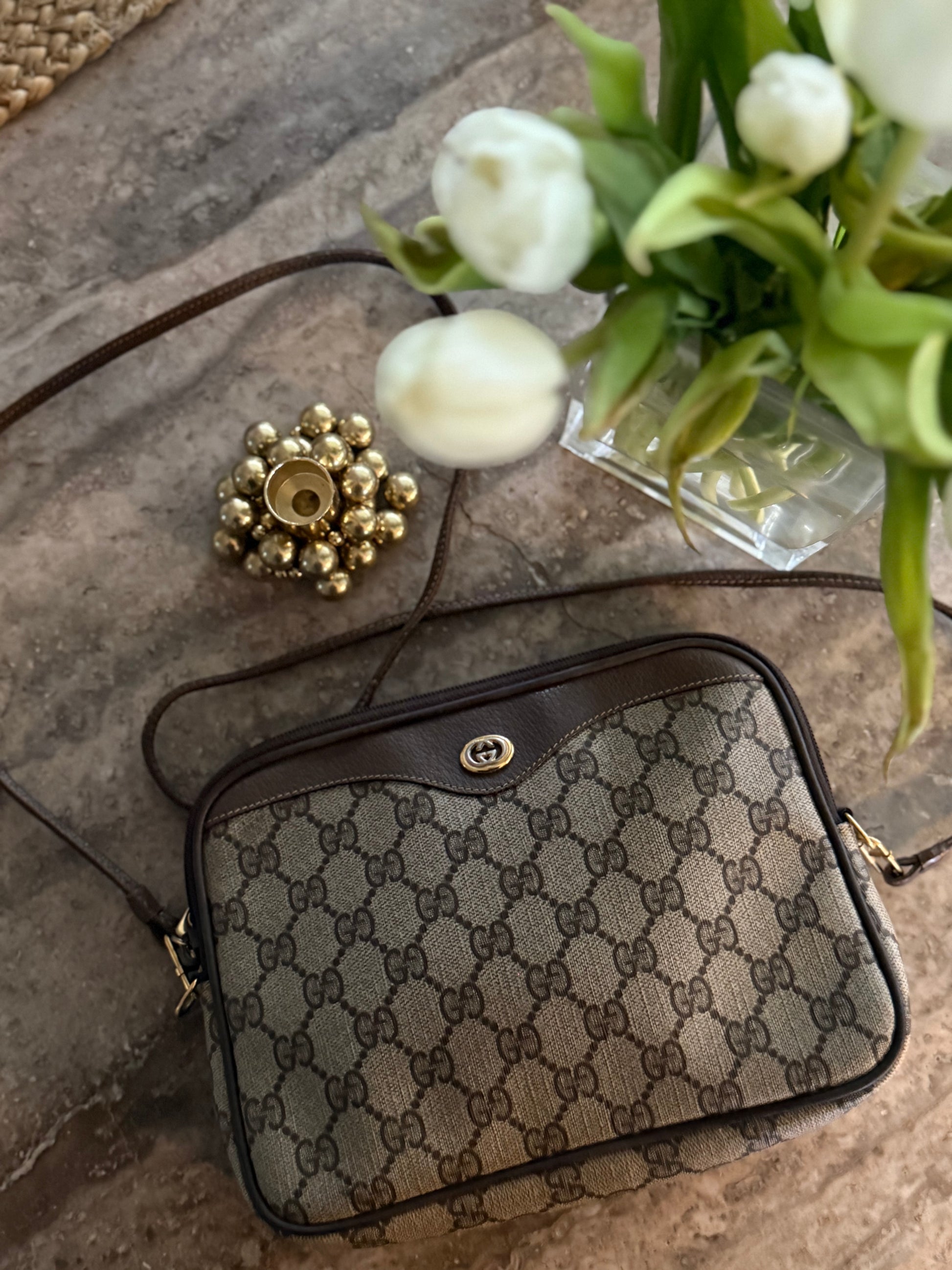 Den fineste mindre Gucci taske. GG Supreme sherry Line. Slidstærk coated kanvas og kalveskind.