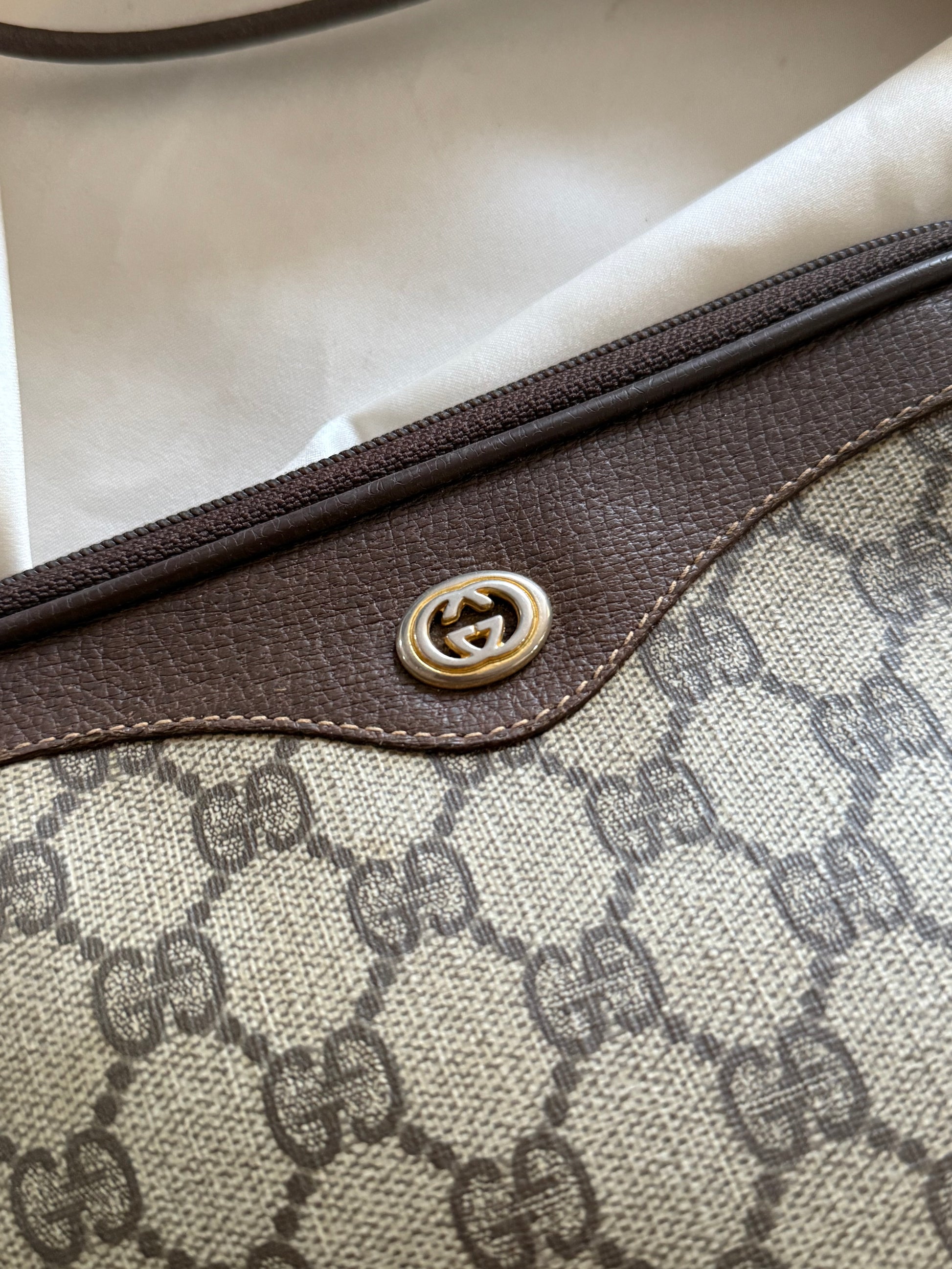 Den fineste mindre Gucci taske. GG Supreme sherry Line. Slidstærk coated kanvas og kalveskind.