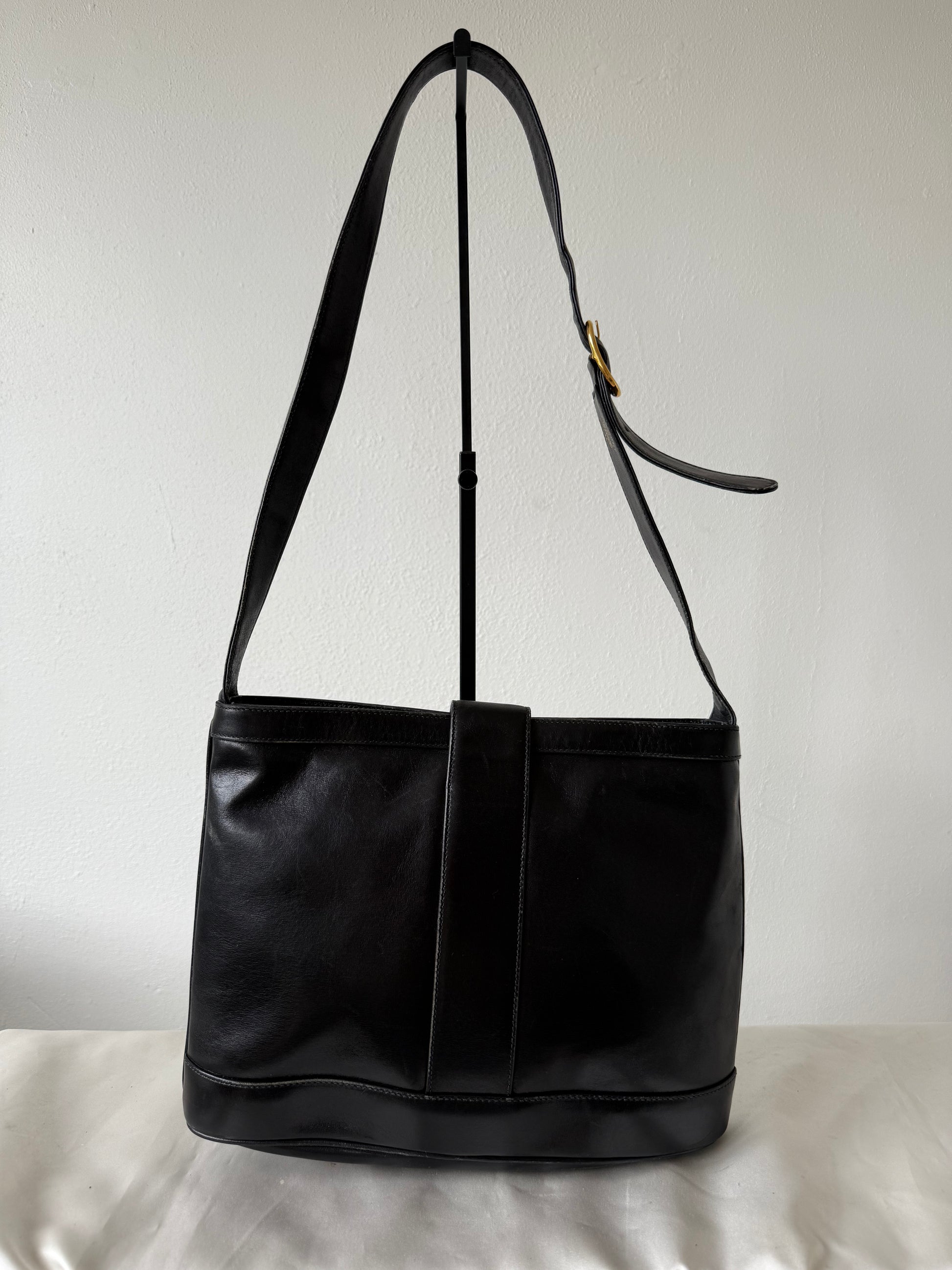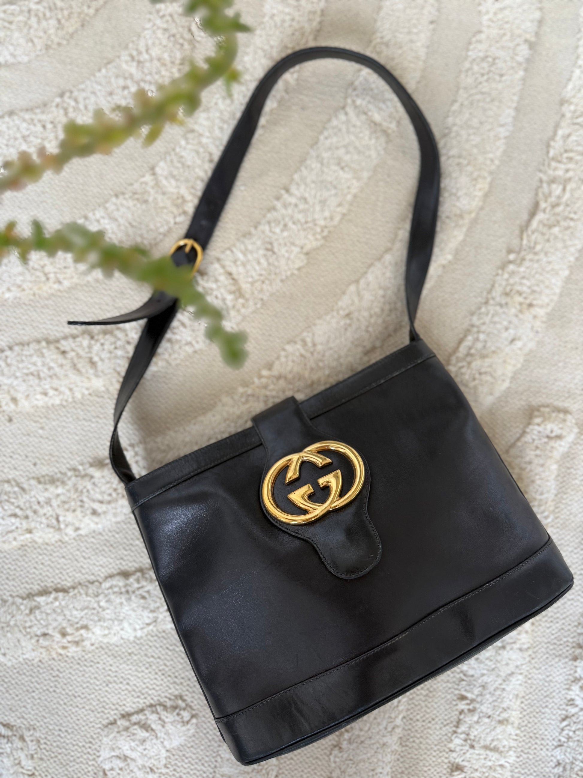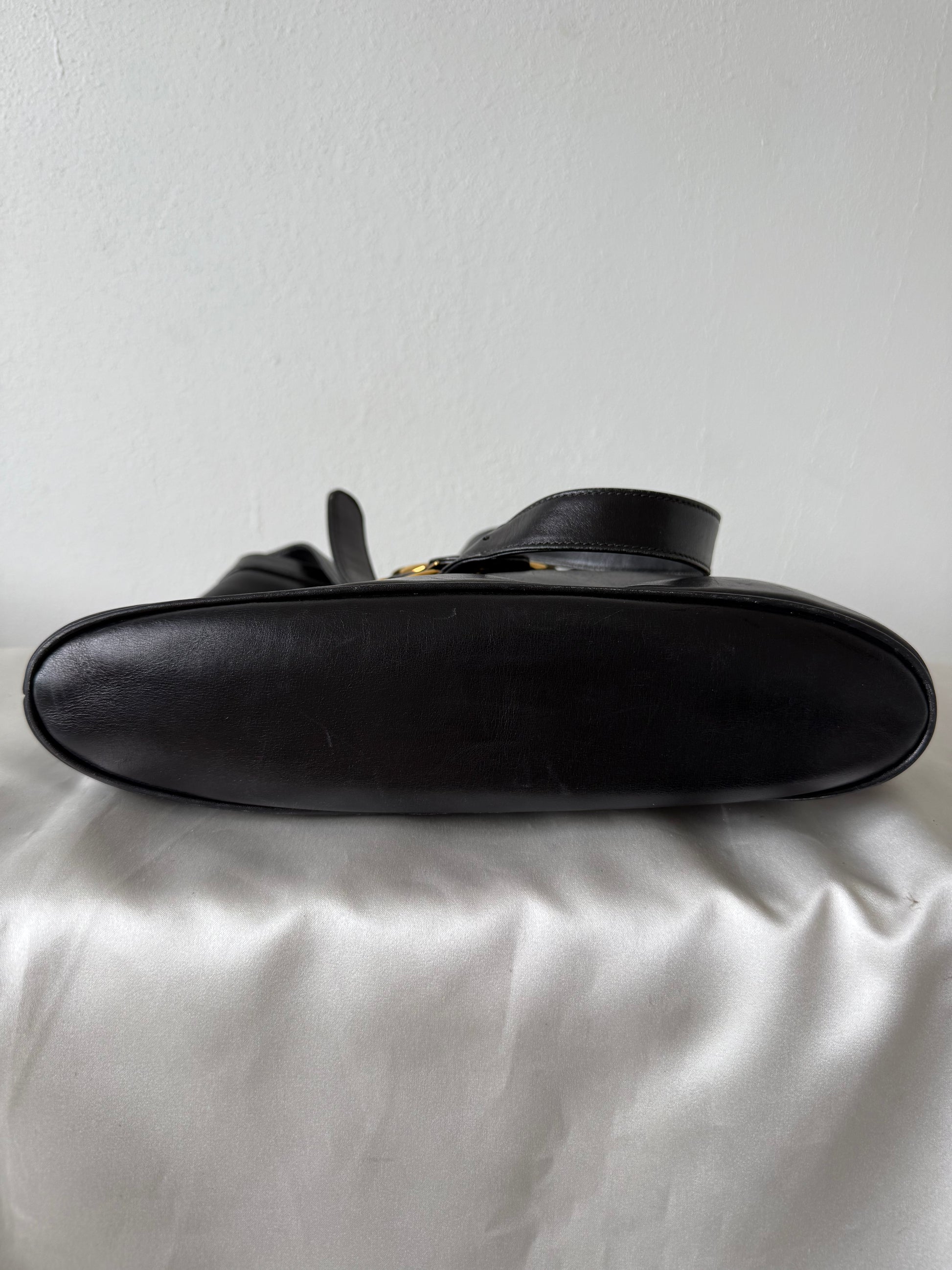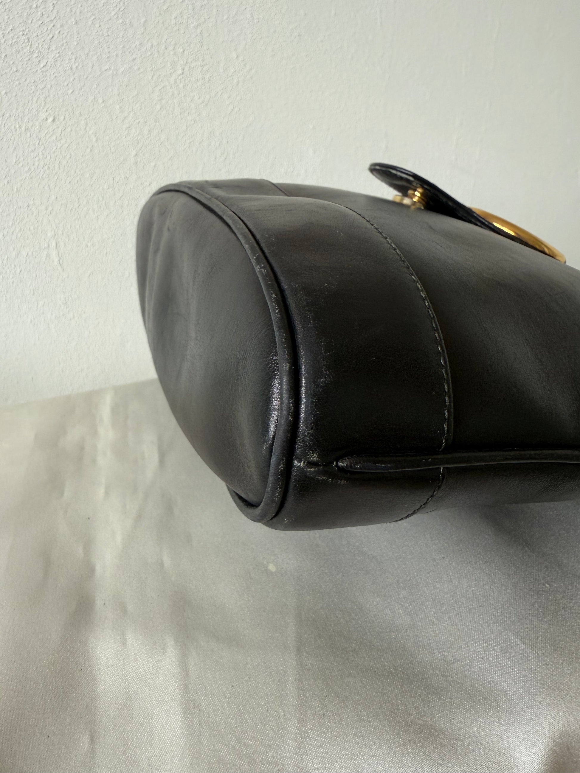 Den smukkeste GG gold logo taske i sort kraftigt kalveskind.