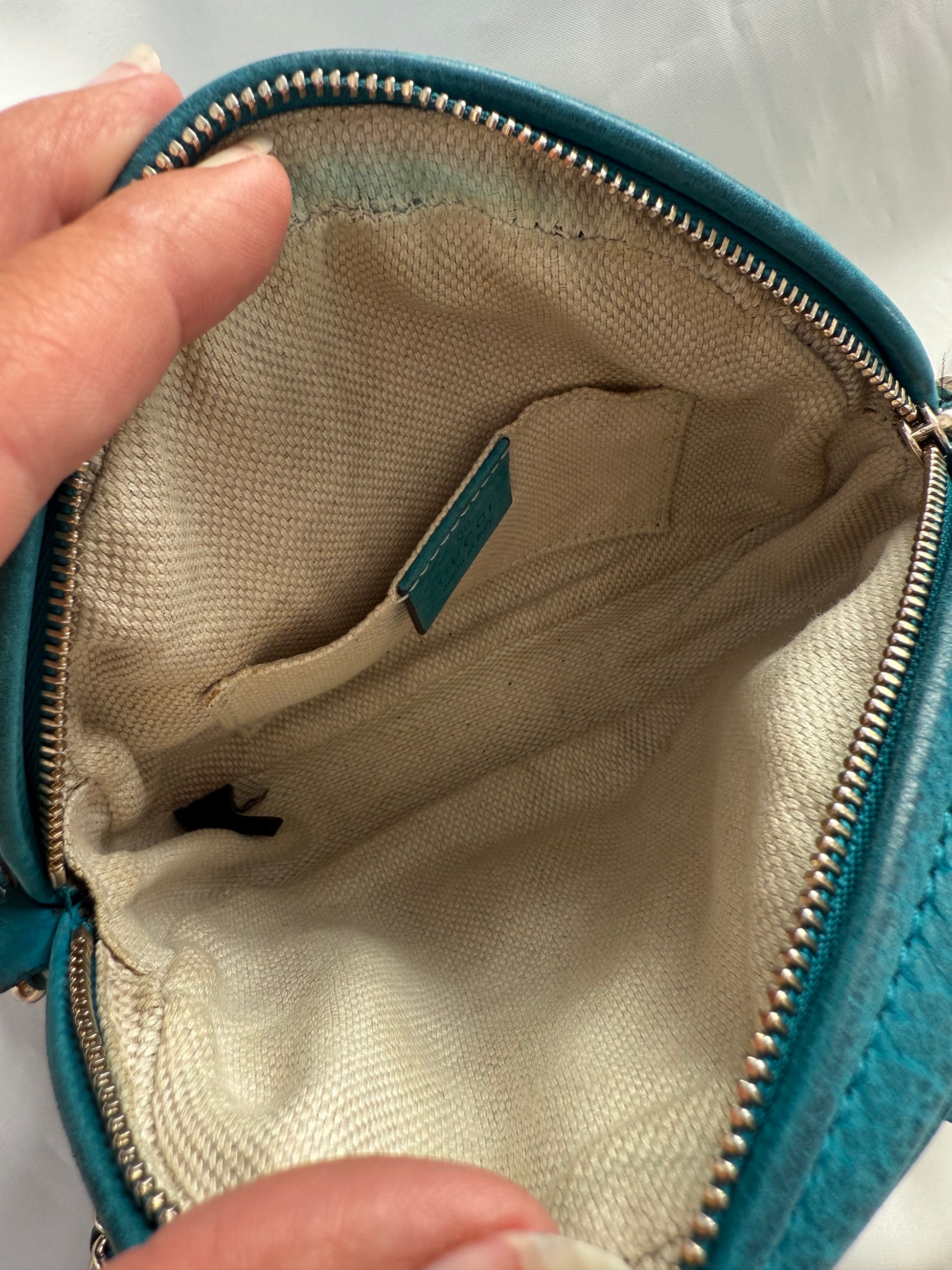 Den smukkeste runde Gucci Soho disco i unik petrol blå farve.