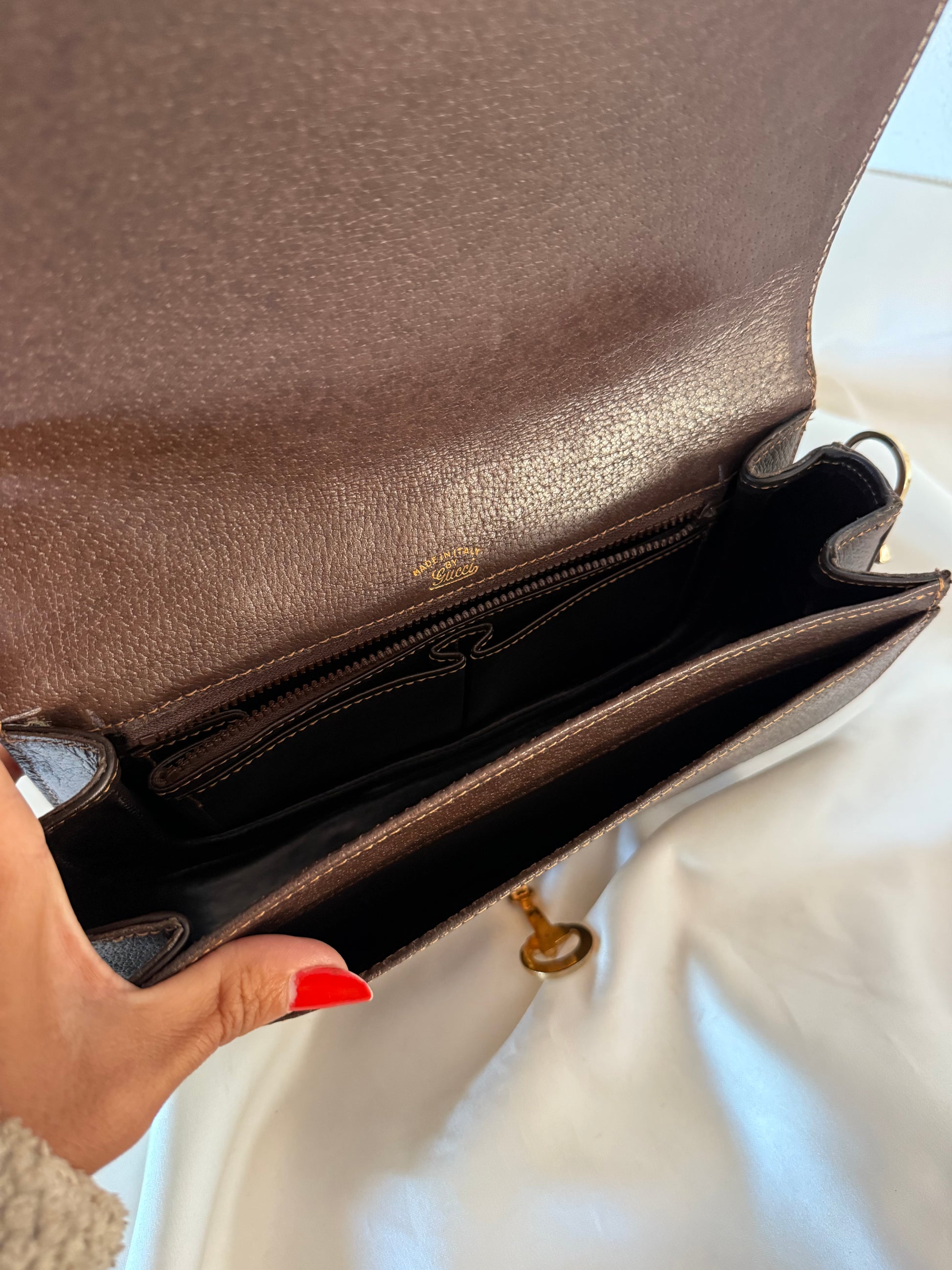 Tasken fremstår i flot stand, med lettere falmet guldhardware.