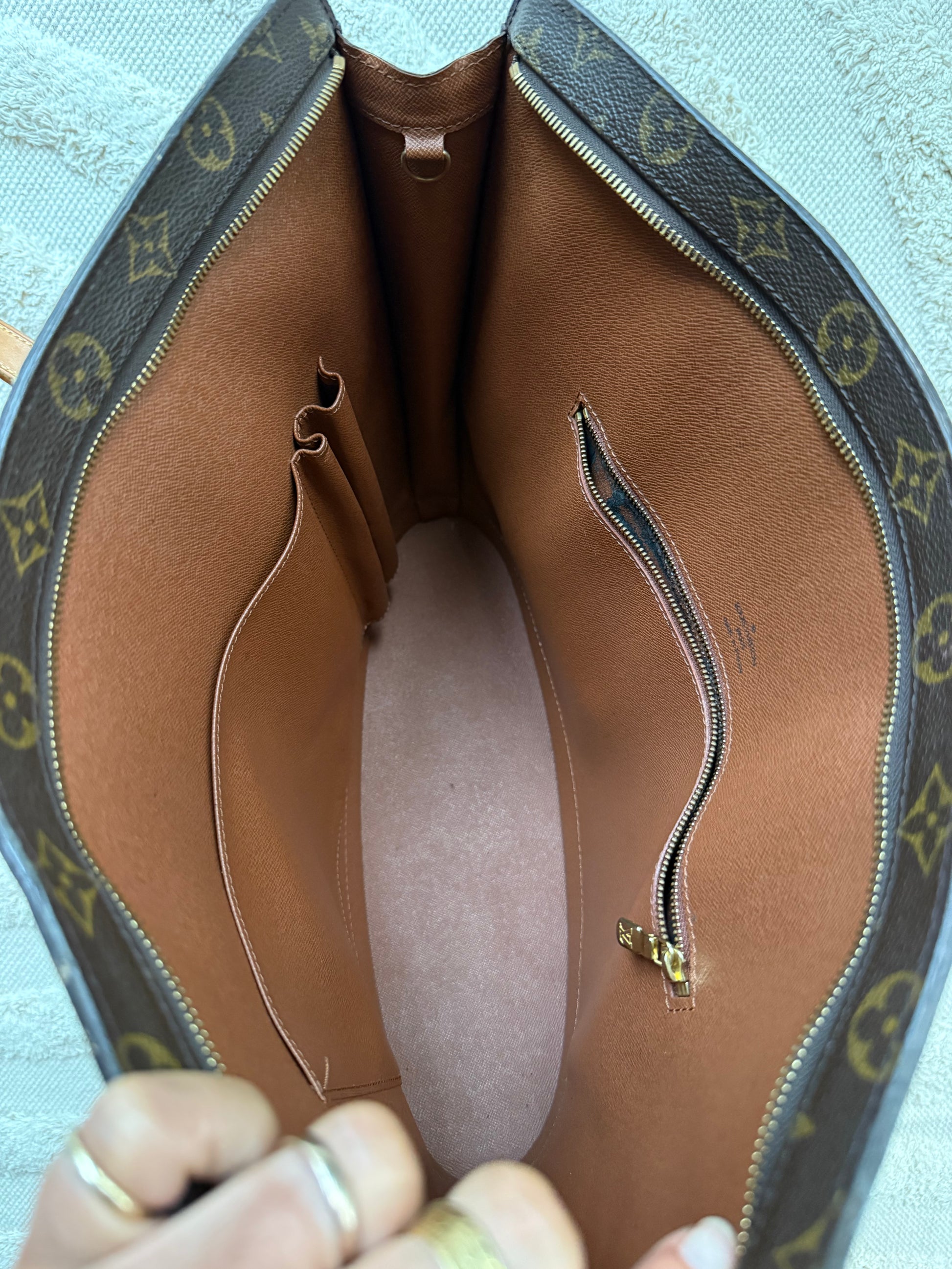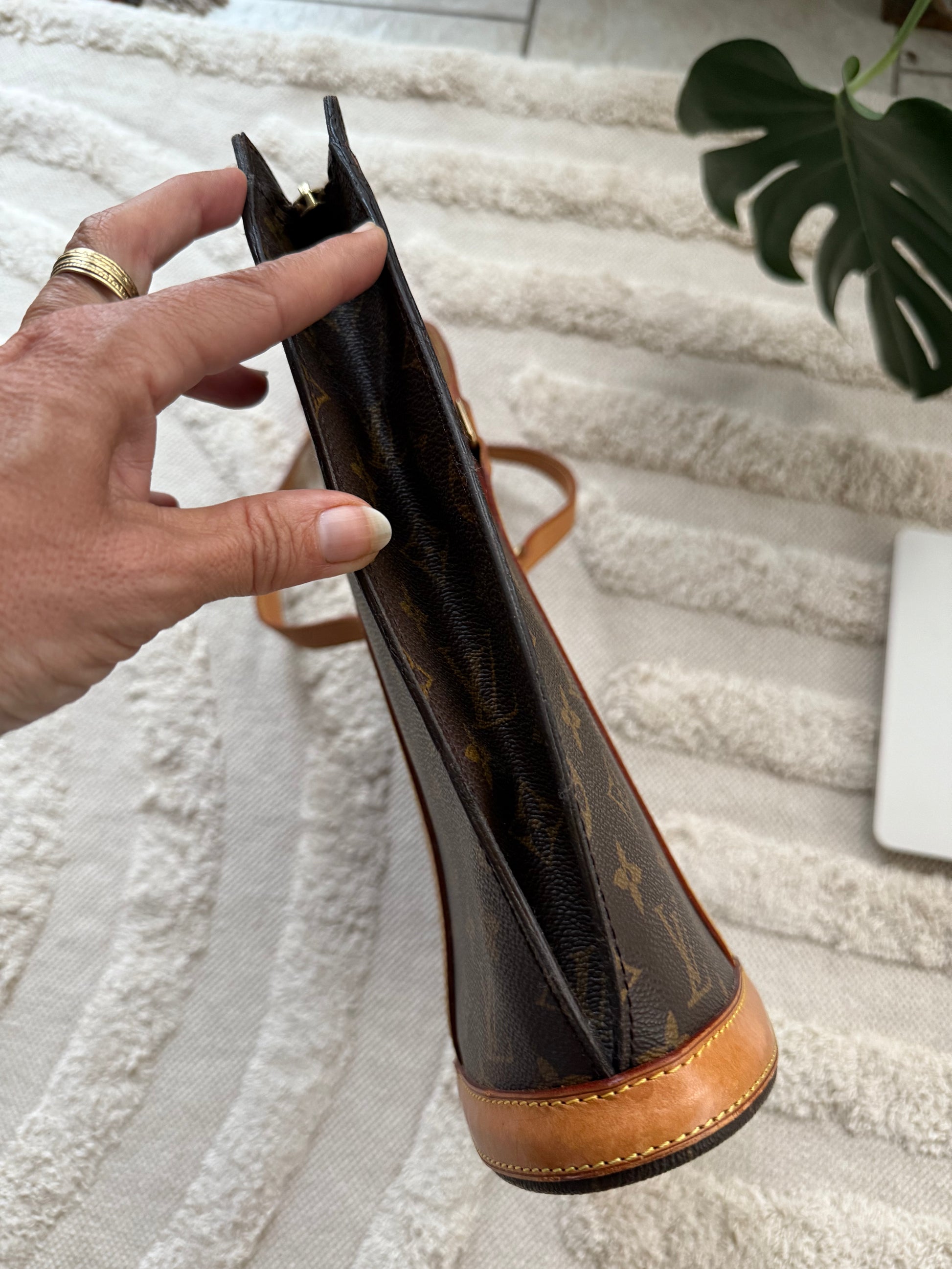 • Materiale: Monogram coated canvas med naturlige læderdetaljer (Vachetta-læder)