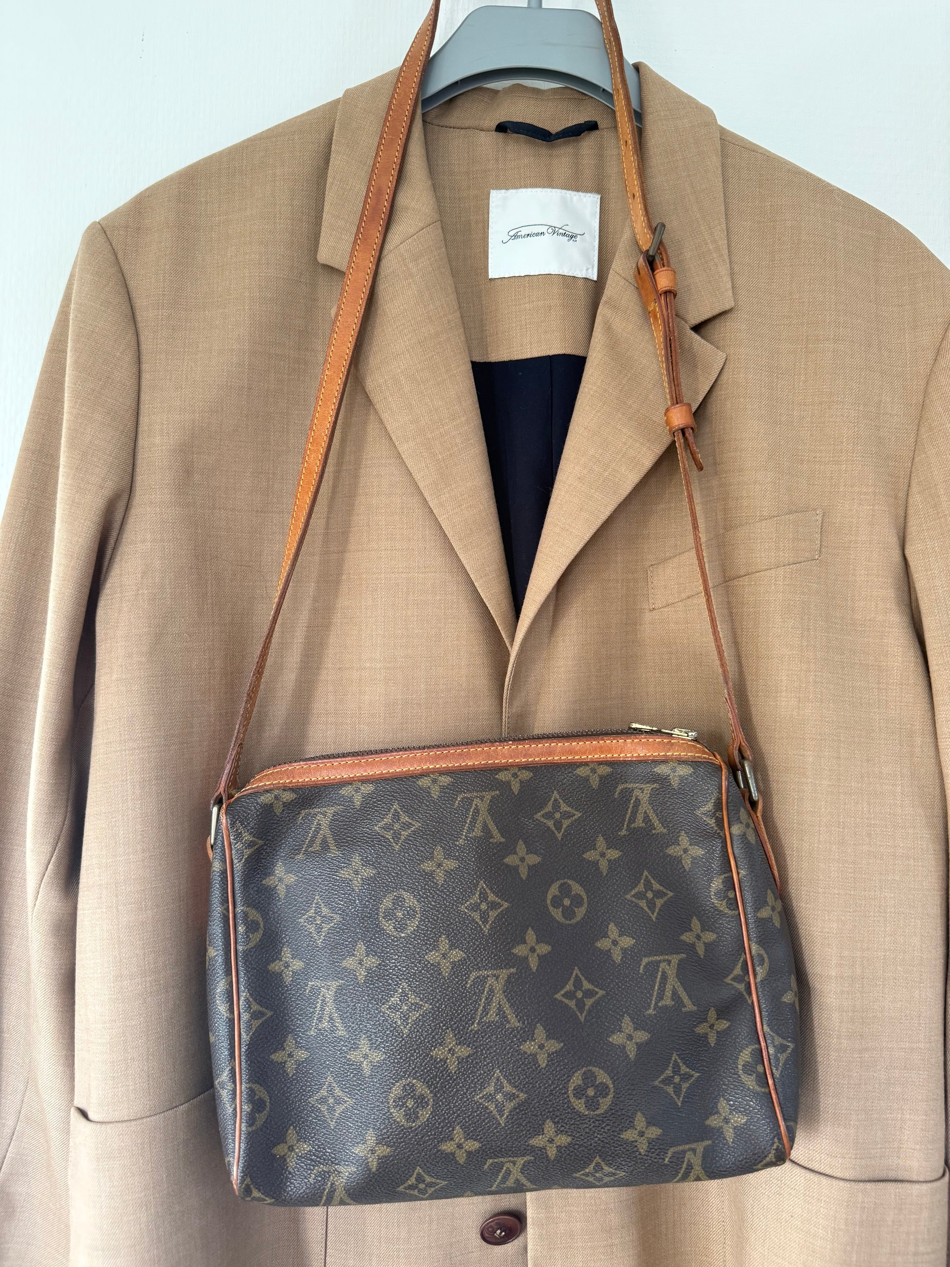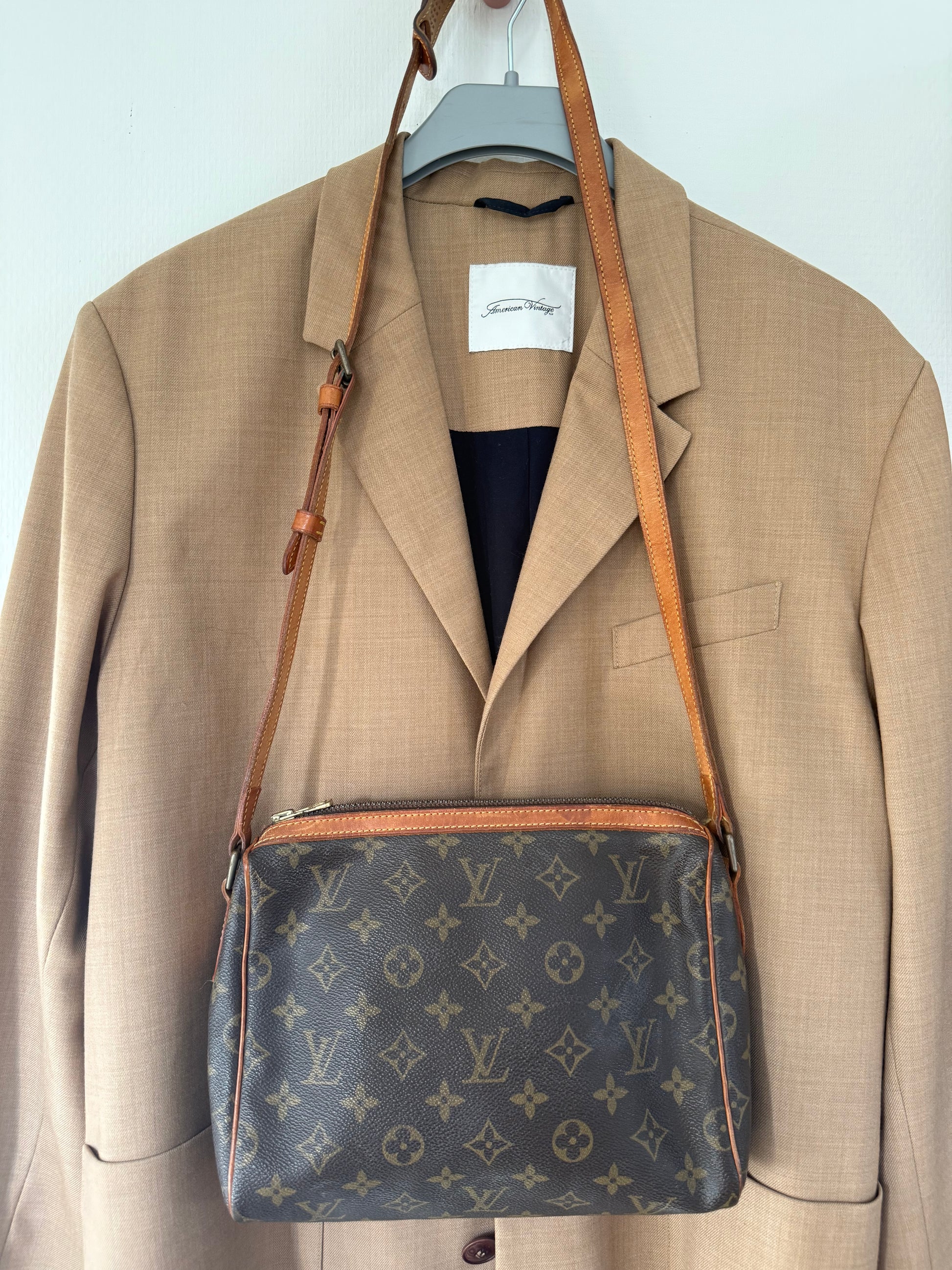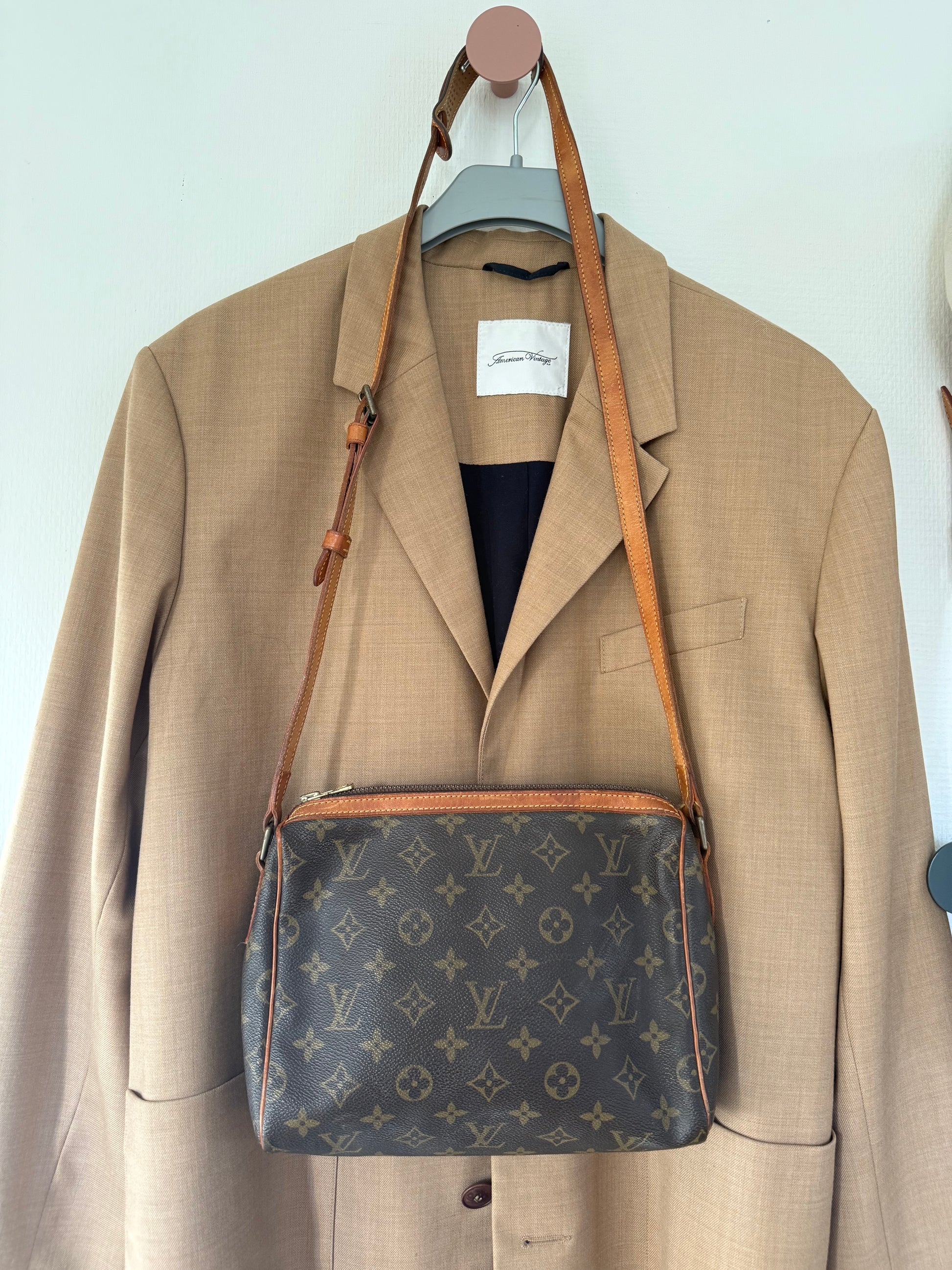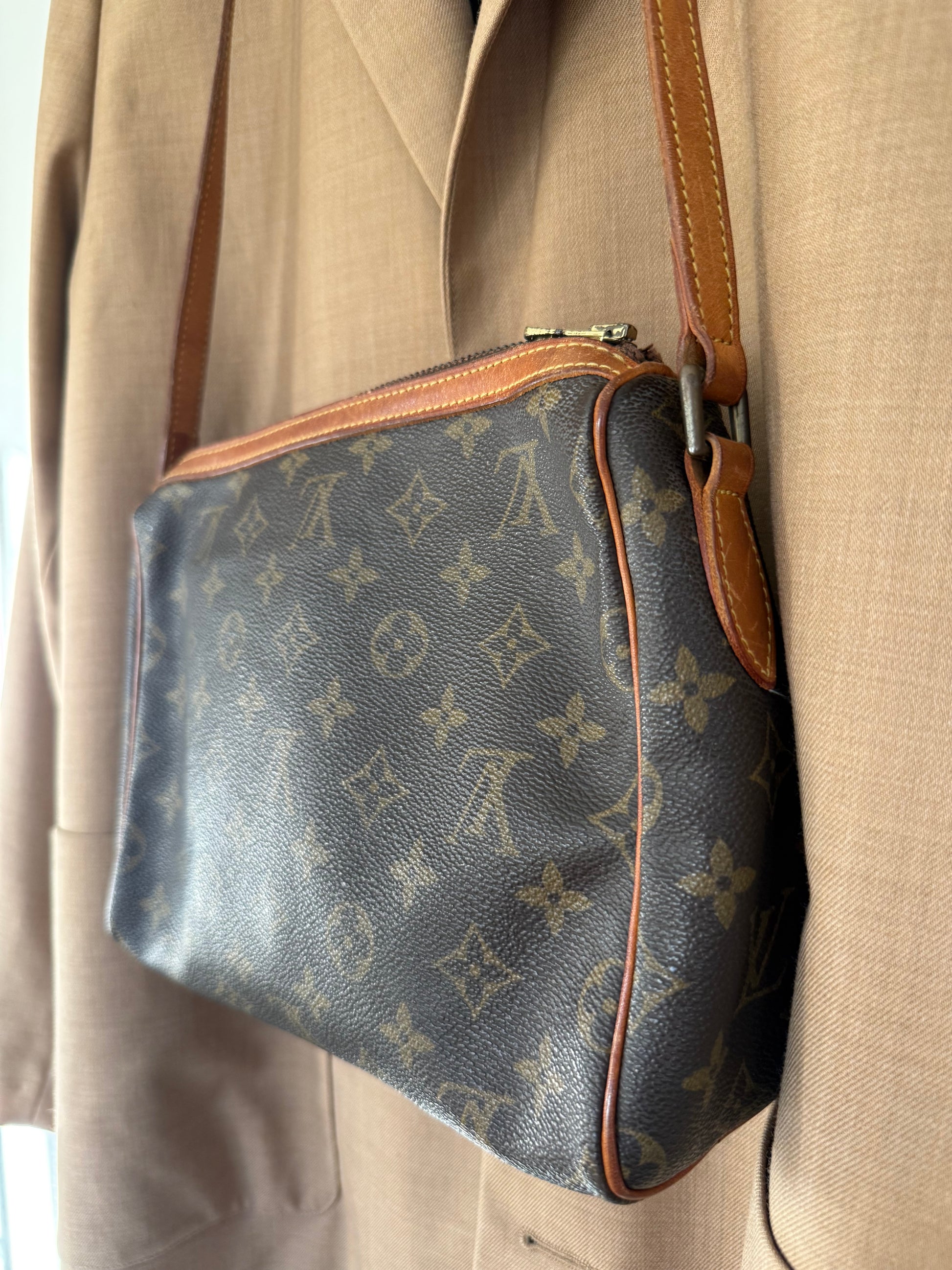 Der er gået et par sting på remmen (se billede) ellers fremstår tasken i smuk stand. Datokoden er ulæselig.