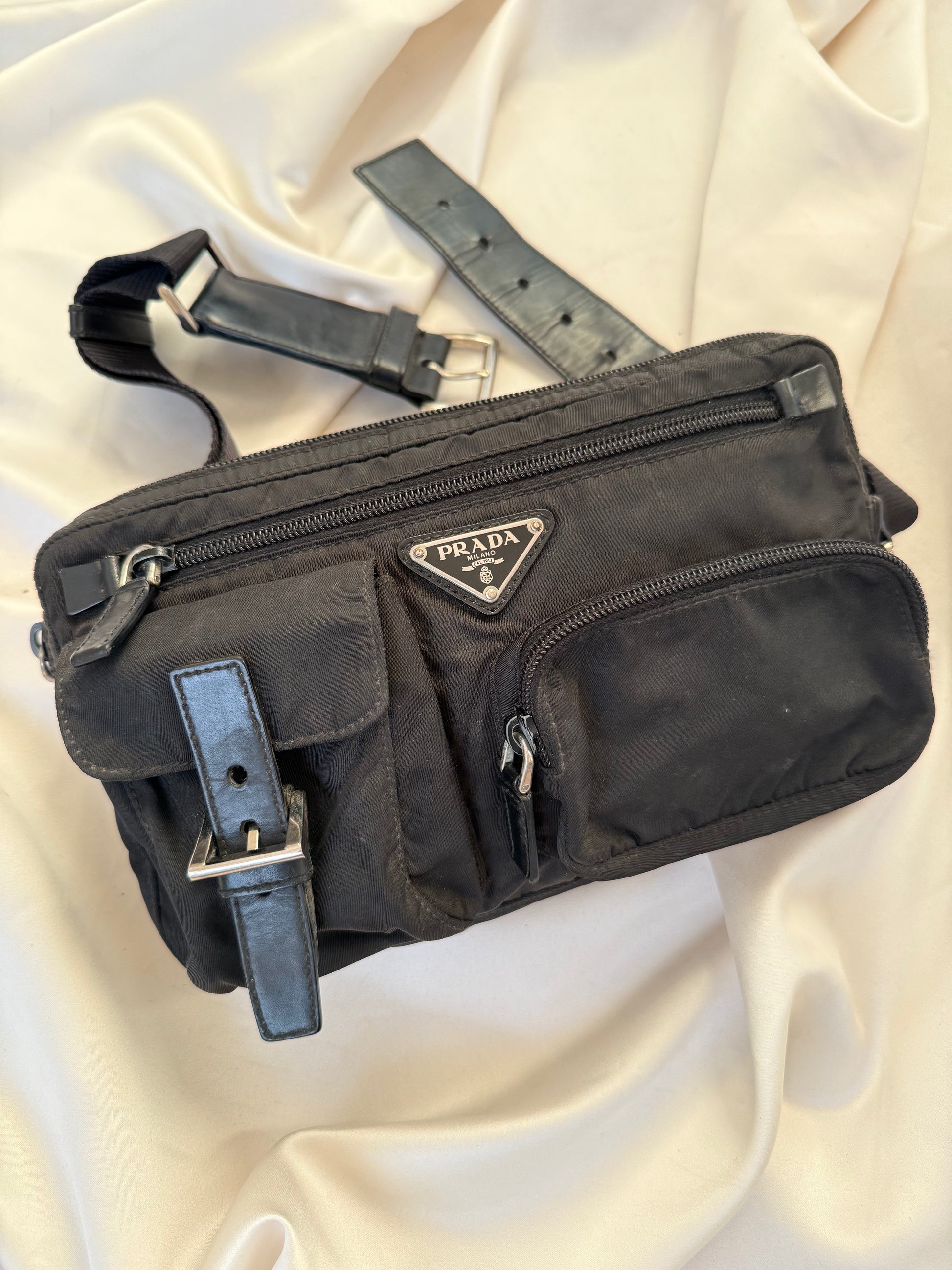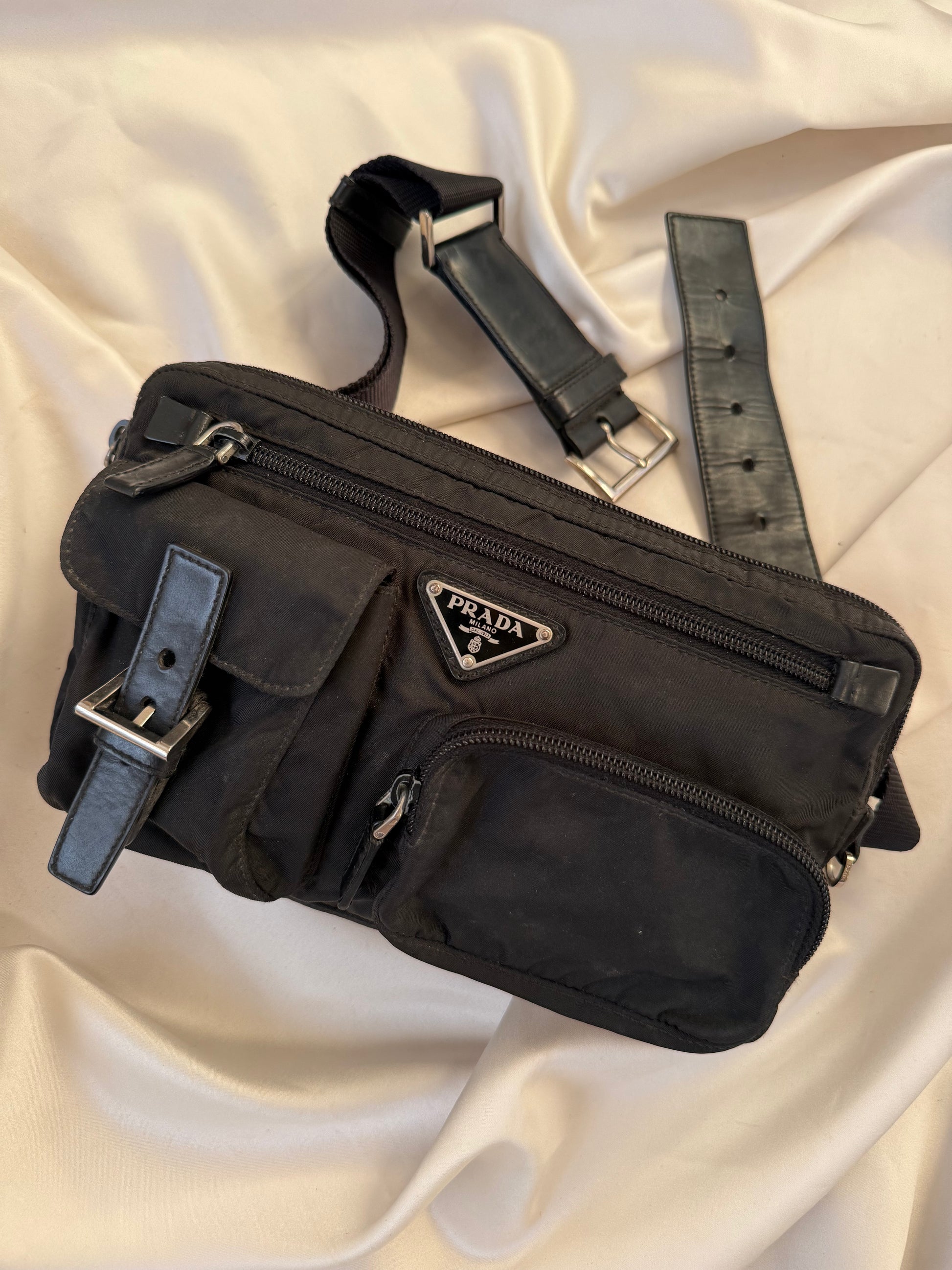 En super fin og cool bælte taske. Et stort hovedrum samt mindre lommer foran, hvoraf den ene lomme lukkes med praktisk magnet lukning.