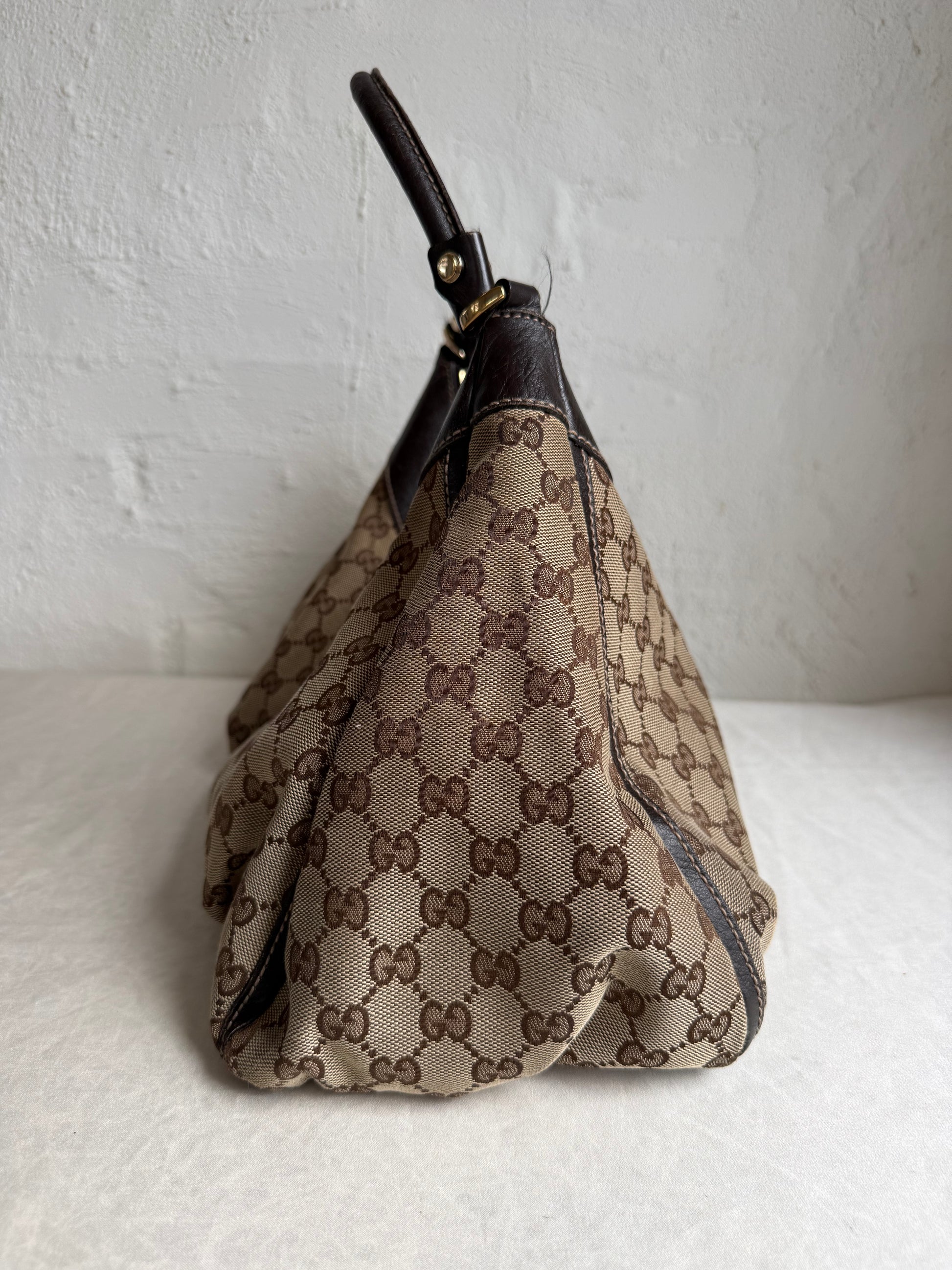 Den skønneste og rummelig Abbey taske i kanvas og blød kalveskind.