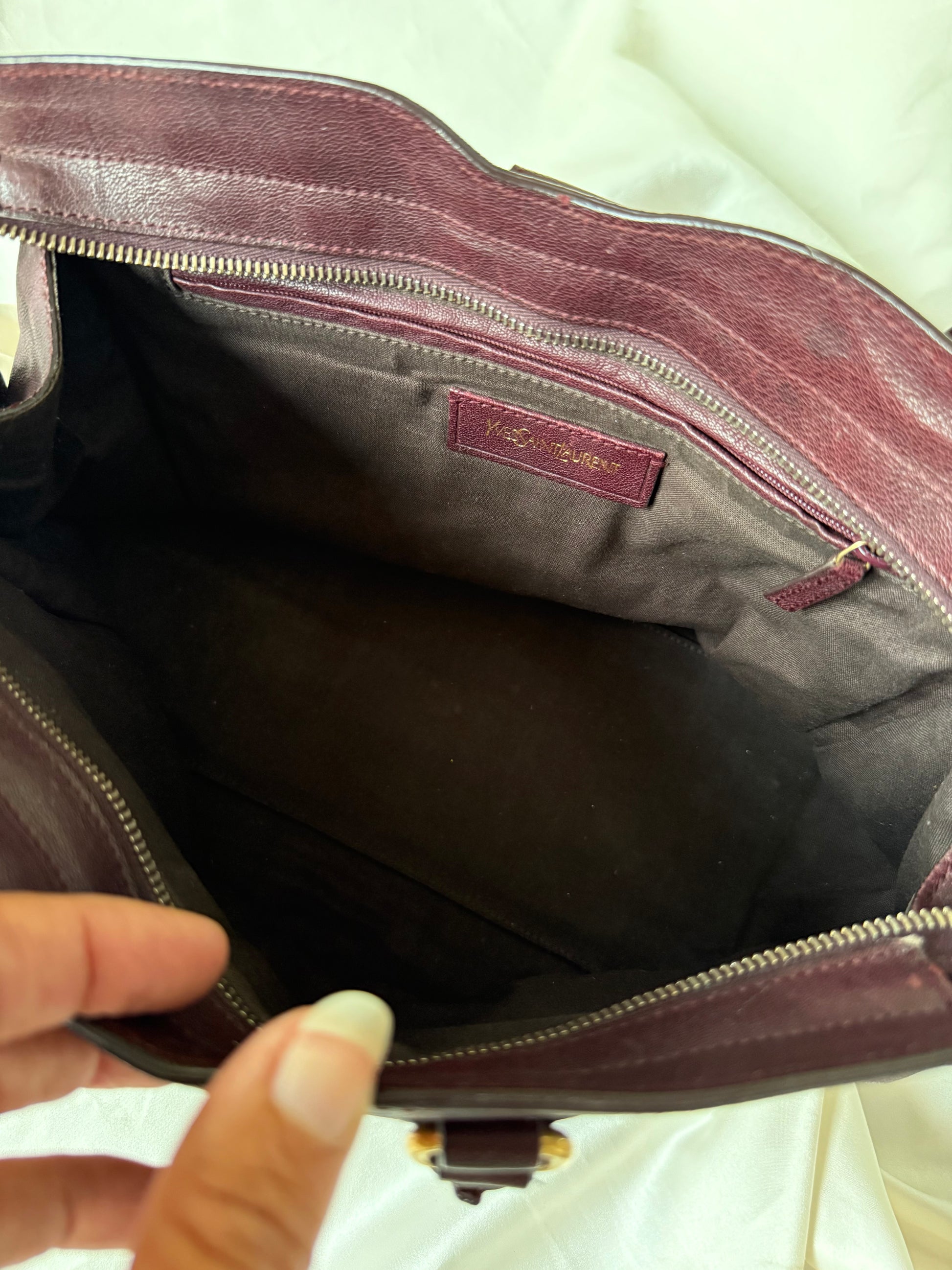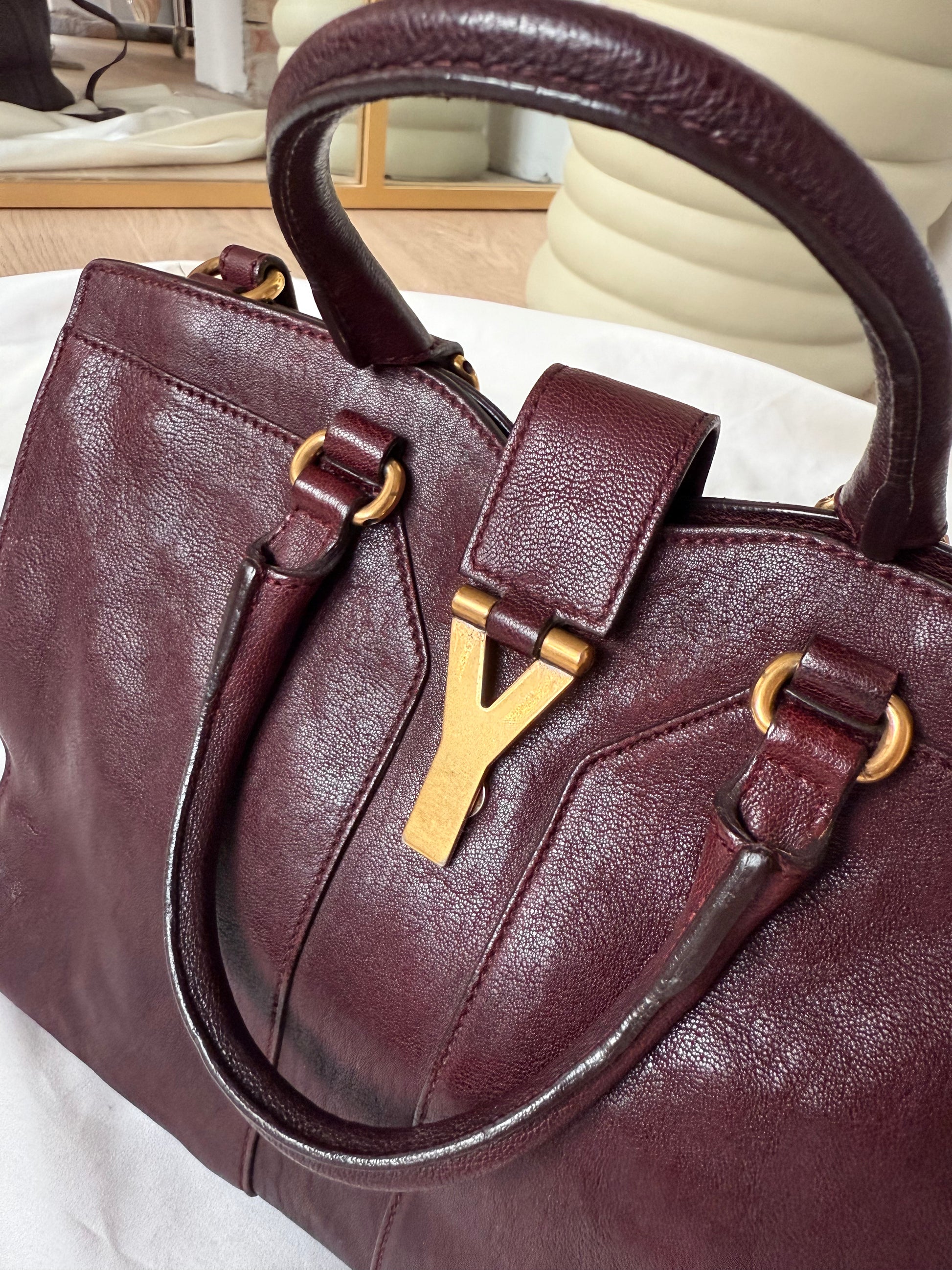 Den smukkeste ikoniske YSL taske, her i kraftigt bordeaux læder og guldhardware.